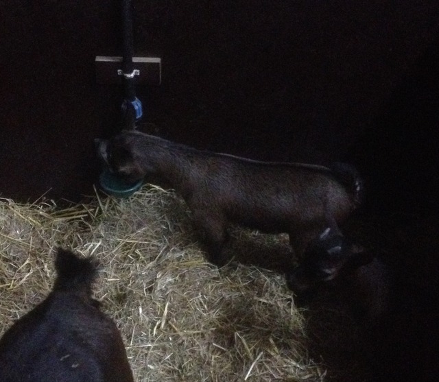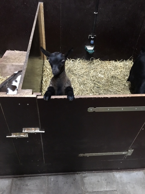 Ik weet niet hoe voorstander u van de winter bent, maar wat mij betreft mag het voorjaar worden en zo denken mijn geiten er ook over. Vooral de lammetjes staan te popelen om meer in beweging te komen en die hebben ook echt zin in het zonnetje. Zoals hier Alina die al zeer nieuwsgierig de wereld inkijkt. Helaas had ze paar dagen later al door dat ze er zo ook uit kon springen, dus helaas de bakjes er uit moeten halen. Alleen bij Maram staat ie nog achterin het hok en kruipen de lammetjes er nog mooi in. De rest heeft ook niet echt een probleem qua temperatuur, ik kan het hok met gemak boven de 10 graden houden en zet zelfs overdag het raam open voor het vochtprobleem wat je nu snel krijgt. Vooral omdat de hokken uitgemest moeten worden en dat doe ik nu niet met dit weer niet en doordat ze nu lammetjes hebben gaat er heel wat water/vocht door in zo’n hok. De waterbakjes bevallen goed en het blijft nu mooi droog onder de bakken en op Liana na, drinken ze allemaal uit de bak. Liana begrijpt het nog niet en doet nog altijd de bek er omheen en krijgt zo wel genoeg water. Dus helaas past ze niet in mijn systeem en zal ze in de toekomst met de drinknippel het weer beter doen? Want ze denkt nog altijd dat ze er in moet bijten. Hopelijk zal het bij haar volgende eigenaar dan weer goed gaan, want er heeft zich al een liefhebber voor haar gemeld en ik zal eens vragen wanneer hij haar wil hebben. Ik zie zelfs al lammetjes bij de waterbak, zoals hier Valeria en dan zie je ook dat de mest (is meer geknoeid hooi trouwens) al heel hoog is.