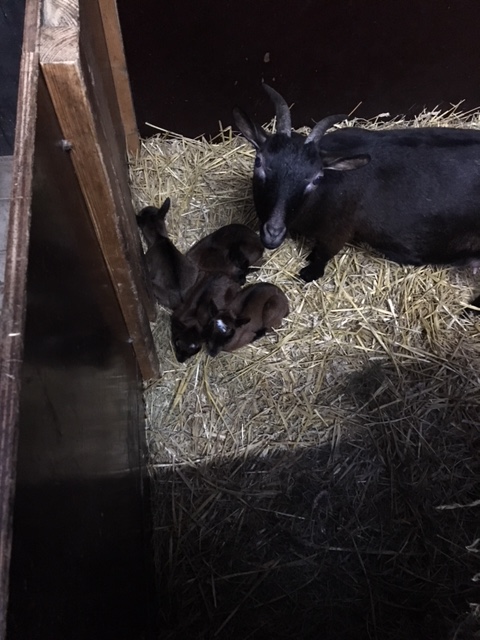 De roodbruine Junica (moeder van Julene en oma van Suzanne) was afgelopen maandag 8 januari uitgerekend. Ze veranderde paar weken geleden al behoorlijk en toen dacht ik al, ze is best zwaar en hier zitten wel veel lammeren in en als ik de datum niet zou weten, dan zou zij als eerste lammeren en was er zelfs een beetje bang voor. Maar ze kwam al dichter bij de datum en dat vond ik niet erg. Dan zou het aantal lammetjes ook wel meevallen. Uiteindelijk hield ze het vol tot woensdagmiddag 14 uur, toen kwam de eerste bok en rond 15 uur had ik de derde bok. Drie beste bokken van gewicht en alles goed. Beetje onder de buik gevoeld en ik dacht, die is wel leeg. Drie bokken is jammer, maar ik heb nog paar kansen en ik heb al vraag naar bokken uit deze combi, dus hoeft geen probleem te zijn en lijkt me ook wel weer een keer leuk om met een Carpe Diem bok op de keuring te komen. Nu keuze uit drie of alle drie kan ook nog!