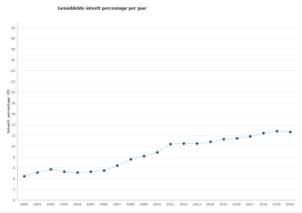 Gemiddelde inteelt per jaar